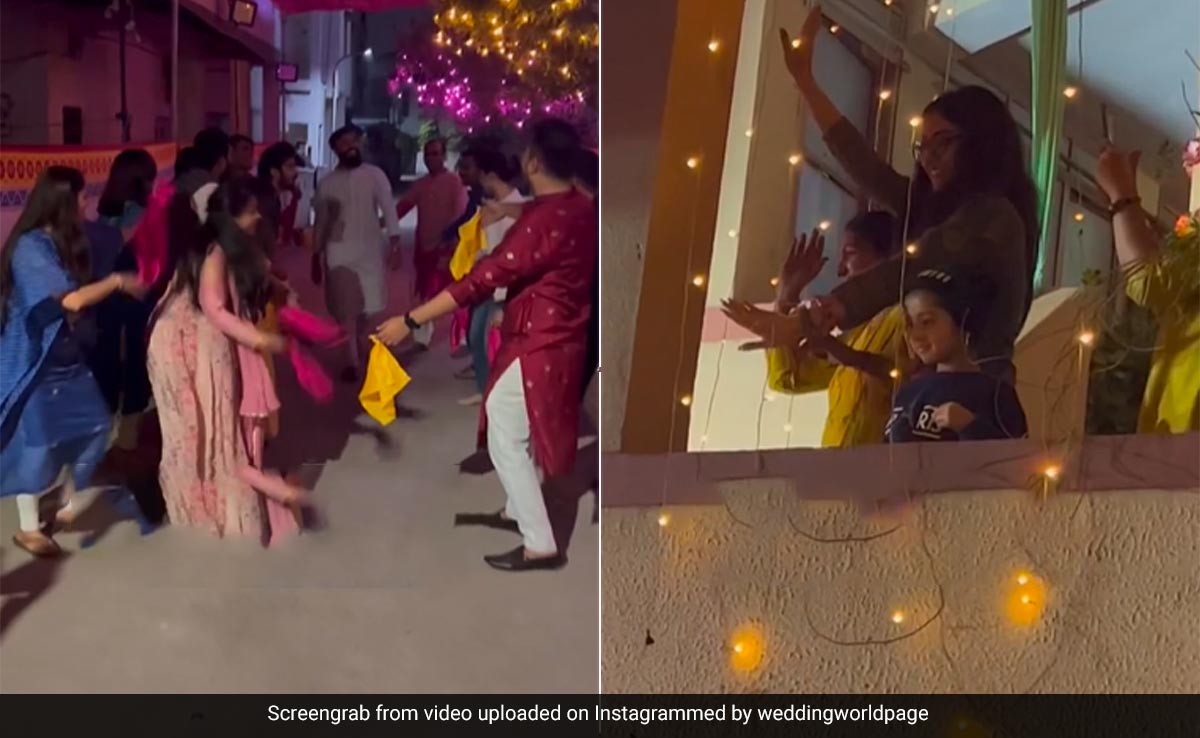 इंस्टाग्राम पर शेयर हुए इस धमाकेदार वीडियो में दूल्हा और उसके दोस्त-यार दुल्हन को लेने एकदम फिल्मी अंदाज में पहुंचते हैं. फिल्म ‘कुछ कुछ होता है' के पॉपुलर सॉन्ग ‘साजन जी घर आए' पर दूल्हा फिल्मी स्टाइल में एंट्री लेता है और दुल्हन के घर के नीचे पहुंच कर डांस करता नजर आता है. दूल्हे के साथी भी कुछ कम फिल्मी नहीं दिखते. वे भी हाथों में रुमाल लेकर डांस करते हुए माहौल बना देते हैं. वहीं दुल्हन की सहेलियां भी बालकनी से झांकती नजर आती हैं.