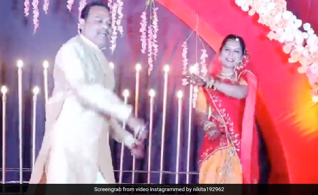 शादी के मौके पर अलग ही माहौल होता है. दोनों ही परिवार जमकर मस्ती करते हैं. वैसे इन दिनों तो शादियों को प्लान किया जाता है, जिससे घर के हर सदस्य को इसमें पार्टिसिपेट करने का मौका मिल जाता है. शादी पर दूल्हे-दुल्हन के चाचा-चाची भी जमकर डांस करते हैं. ऐसा ही एक वीडियो खूब वायरल हो रहा है, जिसमें चाची-चाची स्टेज पर जमकर डांस कर रहे हैं. चाचा-चाची गोविंदा के सॉन्ग 'आप के आ जाने से' पर जमकर डांस करते नजर आ रहे हैं. दोनों का रोमांटिक अंदाज और डांस दोनों ही कमाल के हैं. इस वीडियो में पूरा माहौल ही बहुत ही कमाल का है. इस तरह यह एक वीडियो खूब मजेदार है.