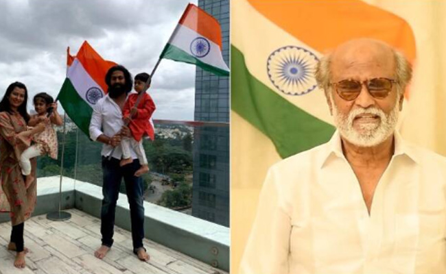 सोशल मीडिया पर वायरल हो रहे फोटोज में दिखा कि बॉलीवुड से लेकर साउथ तक के कई सेलेब्स तिरंगा फहराते नजर आए. साउथ फिल्म इंडस्ट्री उद्योग के कई बड़े सितारों ने सोशल मीडिया पर स्वतंत्रता दिवस पर झंडा फहराया और फोटो वीडियो शेयर किया. रजनीकांत, चिरंजीवी, कमल हासन, यश, राम चरण, धनुष और एसजे सूर्या समेत कई एक्टर्स झंडा फहराया.
