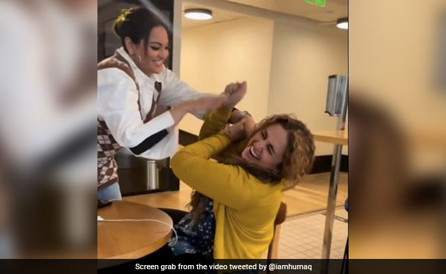 हुमा कुरैशी ने अपने इंस्टाग्राम एकाउंट पर एक वीडियो शेयर किया है. इस वीडियो में देखा जा सकता है कि हुमा कुरैशी एक घड़ी को जादू दिखाते हुए निगल लेती हैं. फिर वह सोनाक्षी सिन्हा के एक झापड़ जड़ देती हैं और घड़ी उनके हाथ में आ जाती है. इसके बाद सोनाक्षी सिन्हा का दिमाग घूम जाता है और हुमा कुरैशी को मजाक में ही पीटने लगती हैं.