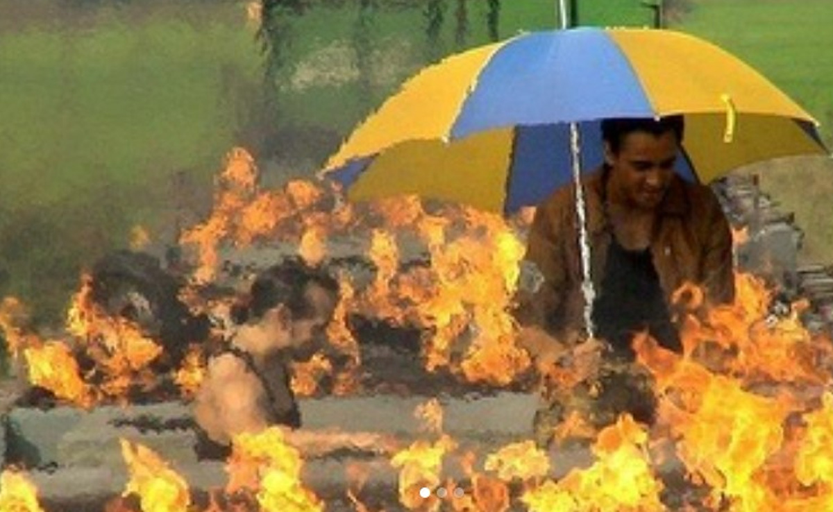 तस्वीरे शेयर करते हुए इमरान ने लिखा, मुझे कुछ पुरानी तस्वीरें मिलीं और लगा कि इन्हें आपके साथ शेयर करना मजेदार होगा. हां ये असली आग थी. छाते ने मुझे धूप से तो बचाया लेकिन आग के सामने किसी का बस नहीं चला. सीन करते वक्त मेरी पलकें जल गई थीं. दरअसल सीन के दौरान अचानक मेरे चेहरे के करीब आग की तेज लपटें थीं.