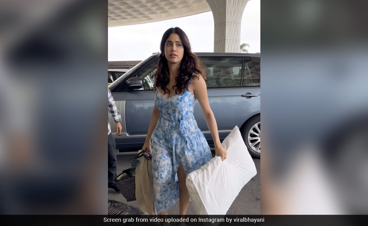 बॉलीवुड सेलेब्स के स्टाइलिश लुक जितना ध्यान खींचते हैं, उनके एयरपोर्ट लुक को लेकर भी फैन्स उतने ही एक्साइटेड रहते हैं. यही वजह है कि सितारे एयरपोर्ट पहुंचते हैं और उनकी तस्वीरें आना शुरू हो जाती हैं. जाह्नवी कपूर भी जब एयरपोर्ट पर पहुंचती हैं तो पैपराजी उन्हें घेर ही लेते हैं और फिर शुरू होता है फोटो पर फोटो लेने का सिलसिला. इस बार भी जाह्नवी कपूर एयरपोर्ट पहुंची तो उनके कूल लुक ने सबका ध्यान खींचा और ढेरों फोटोज और वीडियो खींचे गए. वैसे तो जाह्नवी का लुक ही खास था, लेकिन उससे ज्यादा अट्रैक्ट उनके हाथ में मौजूद तकिए ने किया.