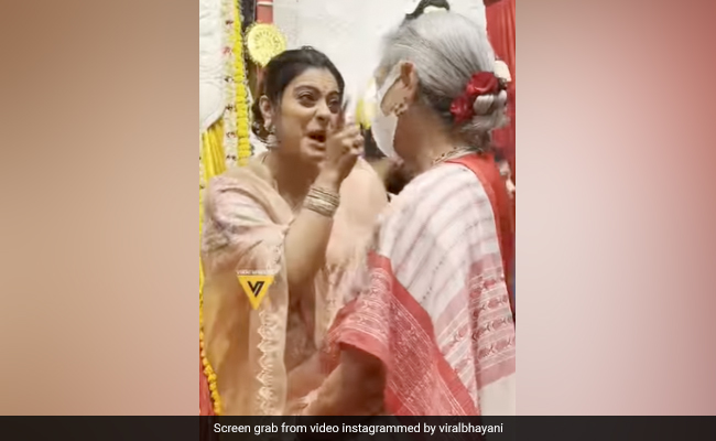 शारदीय नवरात्रि के सीजन में हर जगह दुर्गा पूजा हो रही है. बड़े-बड़े पंडाल भव्य तरीके से सजाये गए हैं. बॉलीवुड में भी सितारे दुर्जा पूजा को धूमधाम से मनाते हैं. फिल्म इंडस्ट्री में हर साल काजोल का परिवार अपनी तरफ से इसका आयोजन करता है. इस साल भी काजोल की फैमिली ने दुर्गा पूजा का आयोजन किया, जिसमें बॉलीवुड के कई नामी सितारे माता का आशीर्वाद लेने पहुंचे. इस दौरान के कई वीडियोज सोशल मीडिया पर वायरल हो रहे हैं. ऐसे में एक वीडियो खूब चर्चा में आ गया है, जिसमें काजोल दुर्गा मां के दर्शन करने पहुंचीं जया बच्चन को डांट लगा रही हैं.