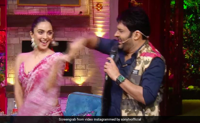 द कपिल शर्मा शो में कपिल शर्मा अक्सर फैंस को हंसाते नजर आते हैं. कई बार वह फिल्म एक्टर से मजे मस्ती करते नजर आते हैं. हाल ही में फिल्म भूल भुलैया 2 का प्रमोशन करने कियारा आडवाणी और कार्तिक आर्यन शो में पहुंचे. इस मौके पर साड़ी में बेहद क्यूट दिख रही कियारा आडवानी पर कपिल भी अपना दिल हार बैठे औऱ लगे उनसे फ्लर्ट करने. उनका यह वीडियो अब सोशल मीडिया पर वायरल हो गया है, जिसमें वह कियारा के साथ फ्लर्ट करते औऱ डांस करते दिख रहे हैं.