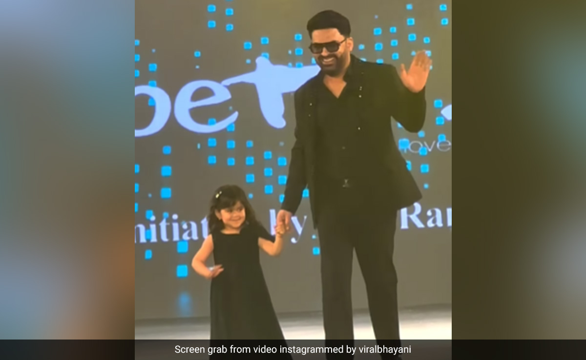 कपिल शर्मा का एक वीडियो इस समय सोशल मीडिया पर वायरल हो रहा है, जिसमें वे रैंप वॉक करते दिख रहे हैं. इस रैंप वॉक की खास बात यह है कि वे इसे अकेले नहीं, बल्कि अपनी क्यूट बेटी अनायरा के साथ कर रहे हैं. वीडियो को विरल भयानी के पेज से शेयर किया गया है. वीडियो में आप पिता-बेटी को एक जैसे कपड़ों में ट्विनिंग करते हुए देख सकते हैं. वीडियो में आप देख सकते हैं कि कपिल अपनी बेटी का हाथ पकड़कर मंच पर आते हैं और वे नन्ही अनायरा को सभी को हाय बोलने को कहते हैं. वहीं अनायरा भी पापा के इंस्ट्रक्शन को ठीक से फॉलो करती हैं.