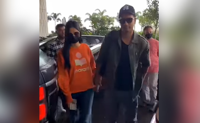 हाथों में हाथ डालें एयरपोर्ट पर आए नजर