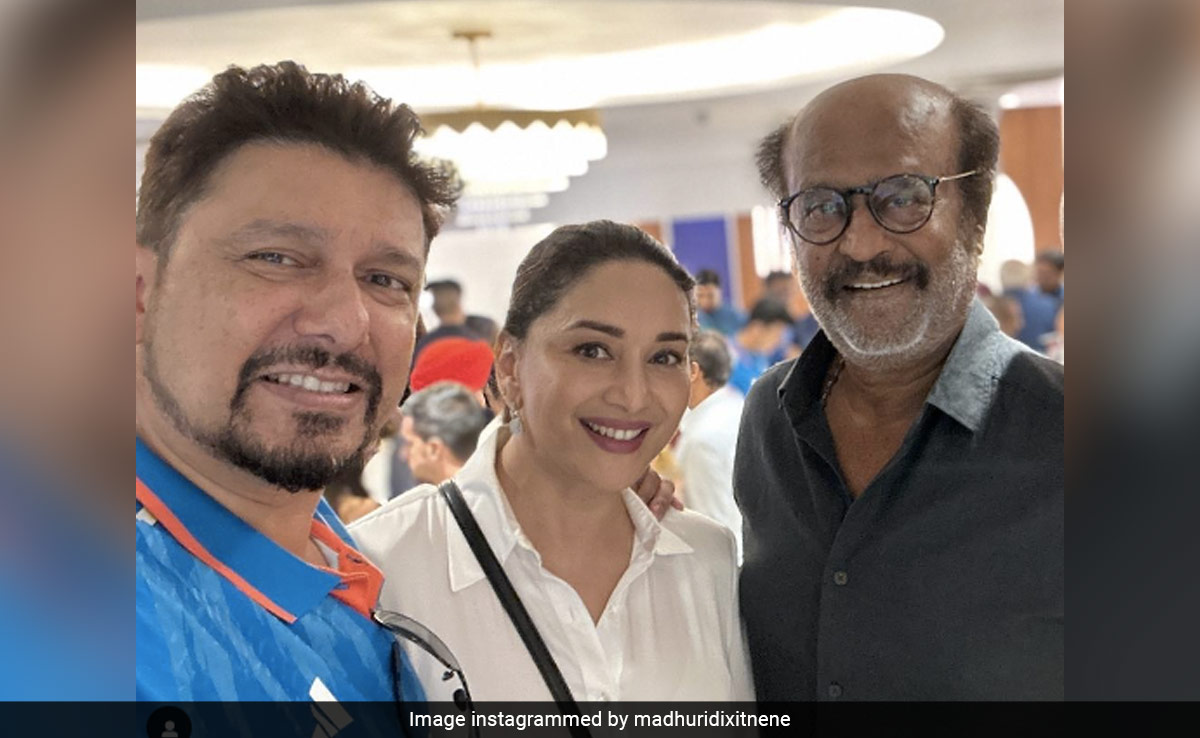 World Cup 2023 Final: वर्ल्डकप 2023 के फाइनल मैच का आगाज हो गया है, जिसका लाइव प्रसारण फैंस देख रहे हैं. जबकि अहमदाबाद के स्टेडियम में इंडिया बनाम ऑस्ट्रेलिया का मैच देखने दर्शक और बॉलीवुड सेलेब्स पहुंचे हैं, जिसकी वह अपडेट सोशल मीडिया के जरिए शेयर कर रहे हैं. इसी बीच बॉलीवुड एक्ट्रेस माधुरी दीक्षित ने साउथ सुपरस्टार रजनीकांत के साथ एक खूबसूरत तस्वीर शेयर की है.