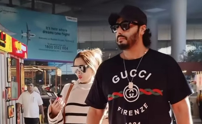मलाइका अरोड़ा और अर्जुन कपूर ने साथ में न्यू ईयर सेलिब्रेट किया और न्यू ईयर मनाकर वह वापस मुंबई लौट आए. दोनों लेटेस्ट फोटो में वह एयरपोर्ट पर स्पॉट हुए. दोनों को एक साथ एयरपोर्ट पर स्पॉट किया गया. दोनों की तस्वीरें वायरल हो रही है, जिसमें दोनों अपने एयरपोर्ट लुक में काफी कुल और स्टाइलिश नजर आ रहे हैं. वीडियो में आप देख सकते हैं कि मलाइका ने ब्लैक लाइनिंग वाली व्हाइट स्वेटशर्ट पहनी हुई है. इसके साथ उन्होंने ब्लैक लेदर पेंट कैरी की है.