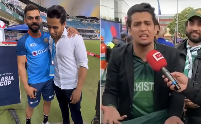 एशिया कप 2022 में रविवार को भारत और पाकिस्तान के बीच बेहद रोमांचक टी20 मुकाबला देखने को मिला. इस मुकाबले में भारत ने पाकिस्तान को करारी हार दी. इसके बाद से भारतीय फैंस में इस जीत को लेकर काफी उत्साह है. वहीं भारत और पाकिस्तान के टी20 मुकाबले के बाद पाकिस्तान क्रिकेट टीम के मशहूर फैन ने विराट कोहली से मुलाकात की. यह फैन कोई और नहीं बल्कि सोशल मीडिया पर मशहूर हुए 'मारो मुझे मारो' फेम मोमिन साकिब हैं. मोमिन साकिब पाकिस्तान क्रिकेट टीम के जबरा फैन हैं.