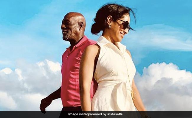 एक्टर सत्यदीप मिश्रा द्वारा शेयर की गई तस्वीर में मसाबा वाइट कलर की ड्रैस पहने दिख रही हैं. जबकि विव रिचर्ड्स ब्लू शॉर्ट्स और पिंक शर्ट में नजर आ रहे हैं. दोनों की ये तस्वीर एंटीगुआ वेकेशन की है. इस खास फोटो के साथ एक्टर ने कैप्शन में लिखा, "कोई है, जो अपने पिता जैसी दिख रही है.?" इसके साथ ही उन्होने बताया है कि यह सेंट जॉन, एंटीगुआ की तस्वीर है.