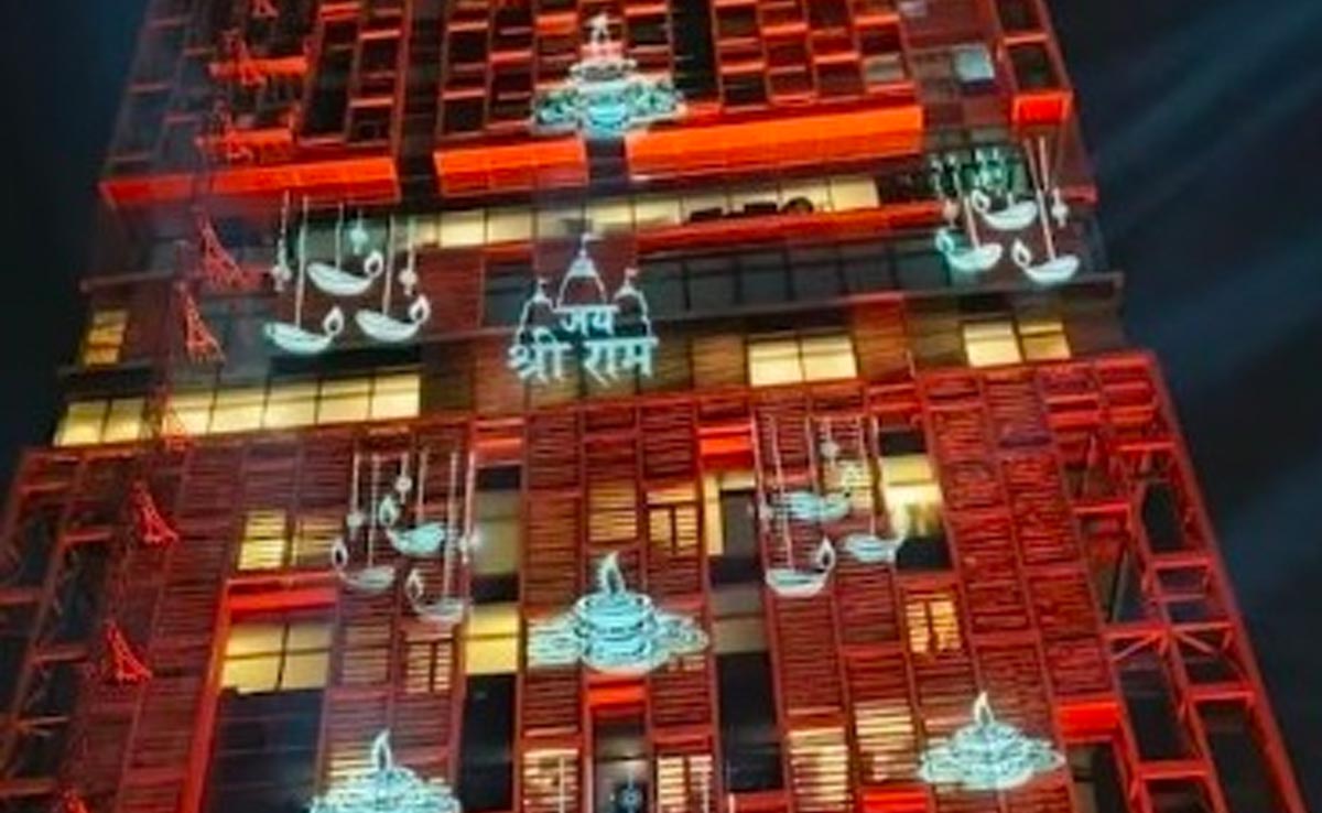 Mukesh Ambani House: अयोध्या में राम मंदिर का आज उद्घाटन है. इस मौके पर बॉलीवुड के कई बड़े सितारे अयोध्या पहुंचे हैं. देश के कोने-कोने में दिवाली जैसा माहौल है. वहीं देश के प्रमुख बिजनेसमैन मुकेश अंबानी ने भी अपने घर 'एंटीलिया' को सजाया. 'एंटीलिया' को भगवान राम की थीम पर सजाया गया है, जिसका एक वीडियो सोशल मीडिया पर तेजी से वायरल हो रहा है. लाइट्स, दीप और फूलों की मदद से 'एंटीलिया' की सजावट की गई. रात में मुकेश अंबानी का घर 'एंटीलिया' देखने में बहुत सुंदर लग रहा है.