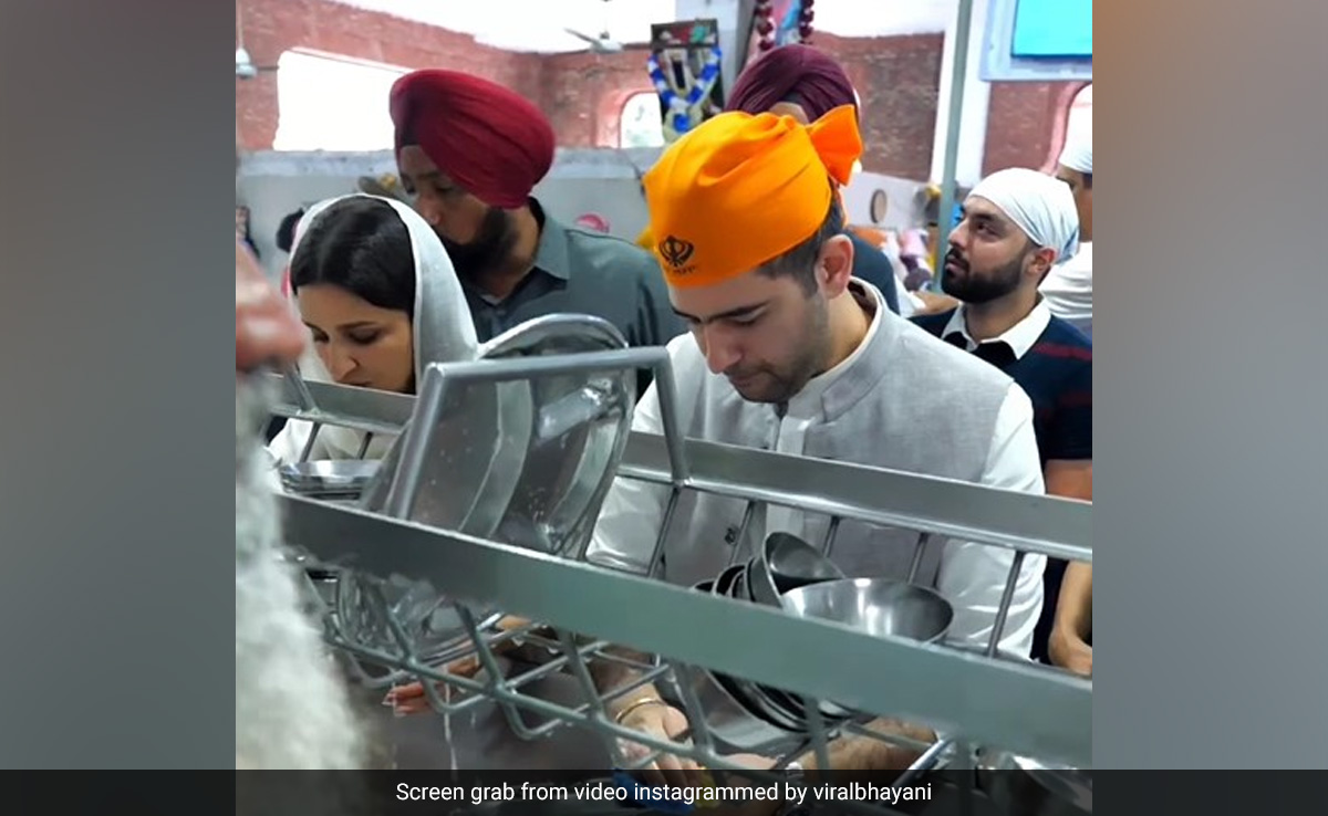 एक्ट्रेस परिणीति चोपड़ा हाल में अपने मंगेतर और आप नेता राघव चड्ढा के साथ गोल्डन टेंपल गई हुई थीं. यहां माथा टेकने के बाद उन्होंने गुरुद्वारे में सेवा भी की और इसी सेवा के दौरान उन्हें और राघव को बर्तन धोते हुए भी देखा गया. परिणीति और राघव चड्ढा का ये वीडियो सोशल मीडिया पर जमकर वायरल हो रहा है और लोग इनकी सादगी देखकर तारीफ करते नहीं थक रहे. वीडियो में आप देखेंगे कि दोनों ही बड़े प्यार और ध्यान से अपना काम करते दिख रहे हैं. उनके आसपास और भी लोग मौजूद हैं लेकिन वो आराम से साथ वालों से बात करते हुए बर्तन धो रहे हैं.