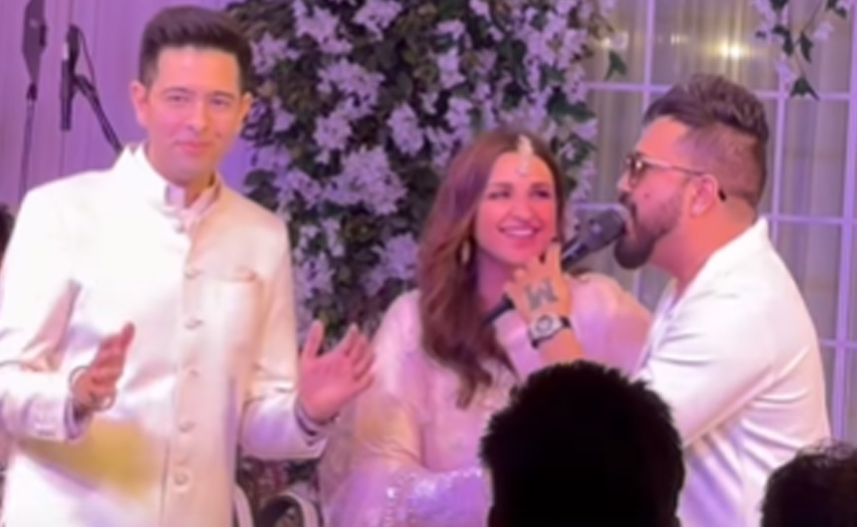 खास दोस्तों और फैमिली के बीच बॉलीवुड सिंगर मीका सिंह ने भी सगाई में एंट्री की. वहीं अपनी सिंगिंग से सभी को थिरकने पर मजबूर कर दिया. सिंगर ने अपने इंस्टाग्राम फीड पर इसी खास शाम का एक वीडियो शेयर किया है, जिसमें परिणीति चोपड़ा और राघव चड्ढा को गल मिट्टी मिट्टी बोल की धुन पर नाचते हुए देखा जा सकता है. वीडियो को शेयर करते हुए मीका सिंह ने लिखा, "बहुत सोणा मुंडा ते बहुत प्यारी कुड़ी! भाई राघव चड्ढा और प्रिय परिणीति चोपड़ा को बहुत-बहुत बधाई." इसी वीडियो को पैपराजी ने भी अपने इंस्टाग्राम अकाउंट पर शेयर किया है, जिसे फैंस प्यार दे रहे हैं.