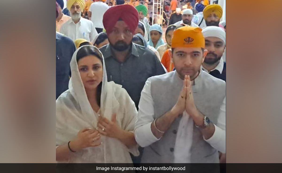बॉलीवुड एक्ट्रेस परिणीति चोपड़ा काफी दिनों से चर्चा में बनी हुई हैं. जब से राघव चड्ढा संग परिणीति का नाम जुड़ा है, तब से एक्ट्रेस लाइमलाइट में आ गई हैं. परिणीति आए दिन राघव चड्ढा के साथ स्पॉट होती हैं. हाल ही में दोनों एक बार फिर अमृतसर के गोल्डन टेंपल में देखे गए. दोनों मत्था टेकने गोल्डन टेंपल पहुंचे थे. इस दौरान की कई तस्वीरें सामने आई हैं. राघव और परिणीति की जो तस्वीरें गोल्डन टेंपल से सामने आई हैं, उस पर फैन्स जमकर प्यार बरसा रहे हैं. दोनों को दर्शन करते हुए देखा जा सकता है. कुछ ही देर में परिणीति और राघव की तस्वीरें वायरल हो गई हैं.