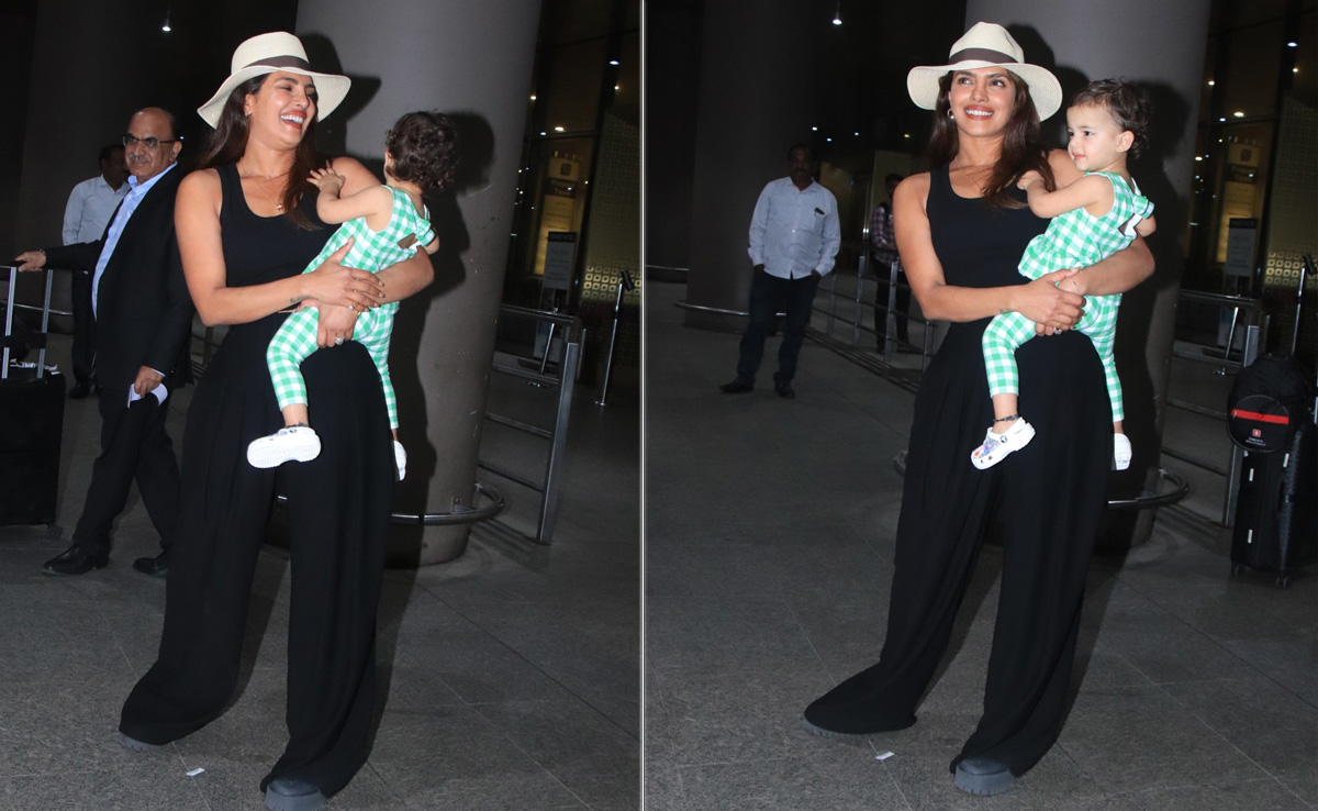 गौरतलब है कि ग्लोबल स्टार प्रियंका चोपड़ा बीते दिन मुंबई एयरपोर्ट पर स्पॉट हुईं, जो कि विदेश से बेटी मालती मैरी के साथ लौटी हैं. ब्लैक आउटफिट और हैट के साथ एक्ट्रेस बेहद खूबसूरत लग रही हैं. वहीं मालती मैरी ग्रीन टॉर और पैंट्स में नजर आईं. इतना ही नहीं मां बेटी की जोड़ी ने पैपराजी को जमकर पोज दिए, जो कि वायरल हो रहे हैं.