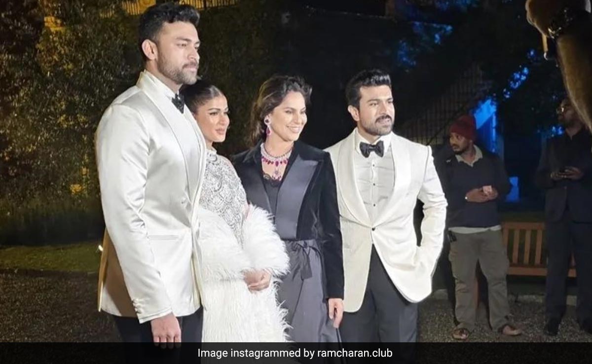 लावण्या और वरुण अपनी कॉकटेल पार्टी में व्हाइट कलर की आउटफिट में नजर आए. वरुण ने कॉकटेल नाइट के लिए काले रंग की बो टाई के साथ सफेद साटन सूट जैकेट और काली पैंट पहनी थी. वहीं लावण्या सिल्वर-व्हाइट गाउन के साथ व्हाइट फर स्टोल में काफी स्टनिंग दिख रही थीं. राम चरण अपने चचेरे भाई के साथ एक जैसी ड्रेस पहने नजर आए. राम चरण की पत्नी उपासना ने जैकेट जैसे टॉप के साथ काले रंग का गाउन पहना था. उपासना भी काफी खूबसूरत दिख रही थीं.