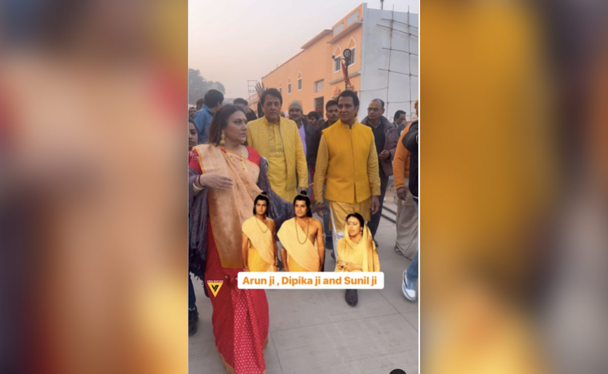 ये राम सीता और लक्ष्मण हैं, टीवी पर प्रसारित हो चुकी रामायण में इन किरदारों को निभाने वाले कलाकार. यानी की राम बने अरुण गोविल, सीता बनकर पतिव्रत निभाने वाली दीपिका चिखलिया और भाई के प्रति निष्ठा रखने वाले लक्ष्मण बने सुनील, जो राम लला की प्राण प्रतिष्ठा से पहले अयोध्या पहुंचे. जब अयोध्या की सड़क पर ये तीनो निकले तो ऐसा लगा कि सचमुच राम, सीता और लक्ष्मण एक साथ चलते हुए भगवान राम की जन्म भूमि पर जा रहे हैं. अरुण गोविल और सुनील केसरिया रंग के कुर्ते पजामे में ही नजर आए और दीपिका चिखलिया सुर्ख लाल साड़ी में स्वयं माता सीता की तरह ही प्रतीत हुईं.