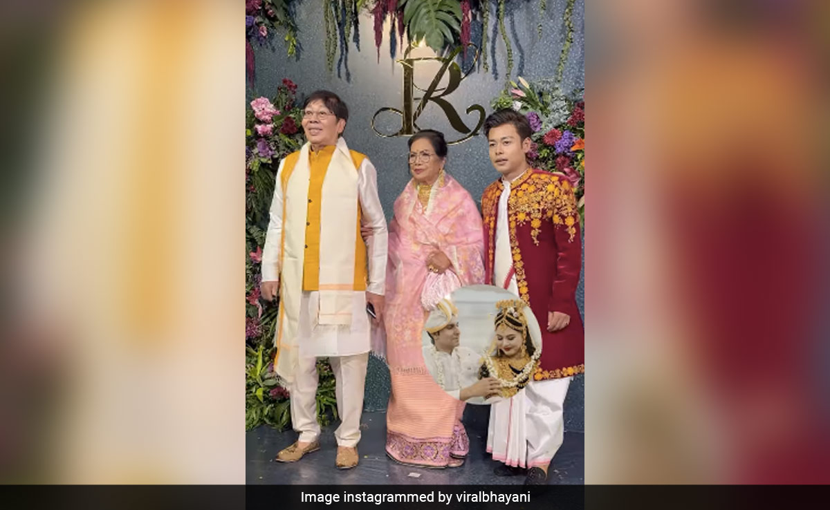 रिसेप्शन के दौरान लिए गए इस वीडियो में आप देख सकते हैं कि दुल्हन लिन के माता पिता मणिपुर की पारंपरिक ड्रेस में समारोह में शिरकत कर रहे हैं. उनके पिता ने कुर्ता पायजामा पहना है और मां ने मणिपुरी अंदाज में साड़ी पहनी है. वहीं लिन के भाई ने धोती के ऊपर कुर्ता और रेड वेलवेट जैकेट पहन कर इस रिसेप्शन में चार चांद लगा दिए. लोग इस वीडियो में लिन के माता पिता को काफी पसंद कर रहे हैं. उनके भाई के भी डैशिंग अंदाज को तो लोग देखते ही रह गए.
