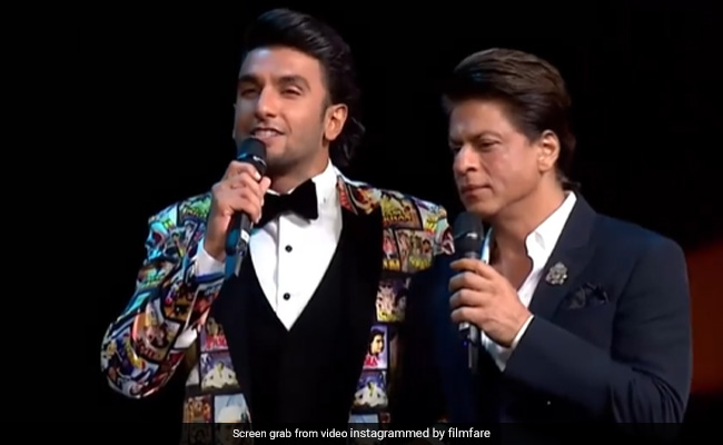 इंस्टाग्राम पर शेयर हुए 63वें फिल्मफेयर अवार्ड शो के क्लिप में देखा जा सकता है कि शाहरुख खान अवार्ड शो को होस्ट करने के लिए मंच पर खड़े होकर अपना काम कर रहे होते हैं. इतने में नीचे बैठे रणवीर सिंह चिल्लाकर कहते हैं, 'मैरी मी, शाहरुख'. ये सुन कर शाहरुख हंस पड़ते हैं और कहते हैं भाई ऐसे खिंचाई न करो. इसके बाद शाहरुख रणवीर को स्टेज पर बुलाते हैं और दोनों मिल कर लोगों को खूब हंसाते हैं. क्लिप में देखा जा सकता है कि रणवीर, शाहरुख से उनके सभी डायलॉग्स बोलने के लिए कहते हैं. शाहरुख बाजीगर से लेकर मोहब्बतें तक अपने सभी सुपरहिट डायलॉन्ग बोलते हैं, फिर रणवीर अपनी फिल्म का एक डायलॉग बोलते हैं और शाहरुख से कहते हैं कि आपके सभी डायलॉग्स का सार तो यही है.