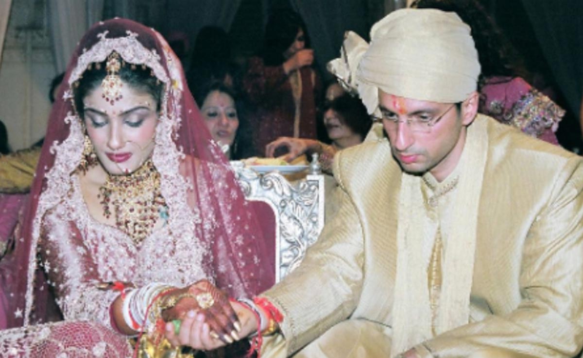 रवीना टंडन और अनिल थडानी की शादी बहुत ही धूमधाम से हुई थी. उनकी शादी में फैमिली और कुछ खास लोग शामिल हुए थे. रवीना और अनिल ने उदयपुर के जग मंदिर पैलेस में शादी की थी. उनकी शादी पंजाबी और सिंधि रीति-रिवाजों के साथ हुई थी. रवीना और अनिल की शादी की वीडियो और फोटोज वायरल हो रही हैं. दुल्हन के लिबास में रवीना बेहद खूबसूरत लग रही हैं. रवीना मंडप पर बैठी हुई हैं और शर्माती नजर आ रही हैं. वायरल हो रही फोटोज में अनिल रवीना के माथे पर किस करते नजर आ रहे हैं. एक फोटो उनके पेरेंट्स के आशीर्वाद देते हुए भी है.