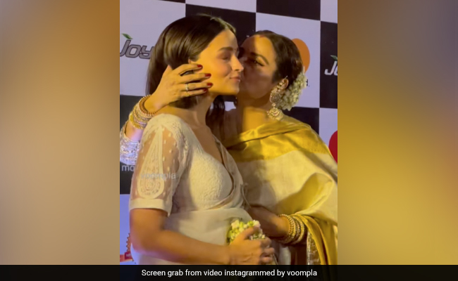 आलिया सफेद साड़ी में दिखाई दीं. इस दौरान रेखा और आलिया बेहद खूबसूरत दिख रही थीं. वहीं रेखा ने अभिनेत्री के लिए सबसे सामने प्यार जताया. रेखा और आलिया भट्ट का एक वीडियो शेयर सोशल मीडिया पर खूब देखा जा रहा है. इस वीडियो में रेखा आलिया को किस कर प्यार जताती हुई दिखाई दे रही हैं. सोशल मीडिया पर दोनों दिग्गज अभिनेत्री का यह वीडियो तेजी से वायरल हो रहा है. दोनों के फैंस वीडियो को पसंद कर रहे हैं.