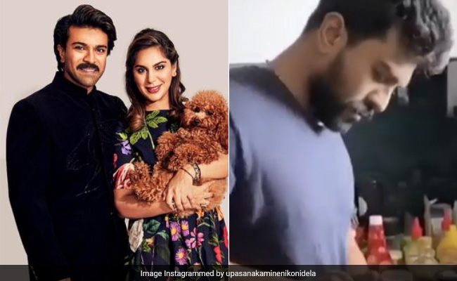 फैन द्वारा शेयर किए गए वीडियो में एक्टर राम चरण एक अवार्ड शो या किसी फंक्शन में वाइफ उपासना के साथ पहुंचे हुए हैं. वहीं इस दौरान सोफे में दोस्त के साथ बेठे राम चरण की वाइफ दूसरे सोफे पर बैठ जाती हैं. हालांकि साफ नजर आ रहा है कि एक्टर खुद ही वाइफ को बैठने के लिए कहते हैं. वहीं आगे वीडियो में लिखा है एक दिन बाद, जिसमें राम चरण घर की सफाई से लेकर खाना बनाते हुए दिखते हैं. इस वीडियो के कैप्शन में लिखा है, 'उपासना का बदला...'