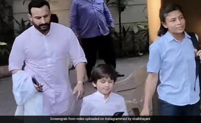 सैफ अली खान ने इस मौके पर पिंक कलर का कुर्ता और पायजामा पहने हुए थे. वीडियो में दिख रहा है कि वह अपने बेटे के साथ बाहर निकल रहे हैं. करीना उऩके साथ वीडियो में नहीं हैं. हालांकि दोनों की पोज देते हुए कई फोटो वायरल हो रही हैं, जिसमें सैफ को पेयर करते हुए करीना भी पिंक कलर की साड़ी में दिखीं. दोनों काफी सुंदर दिख रहे थे.