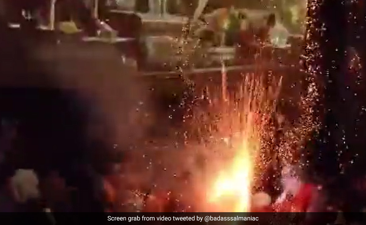 सोशल मीडिया पर एक वीडियो वायरल हो रहा है, जिसमें भाईजान के फैन्स थिएटर के अंदर पटाखे फोड़ते दिखाई दे रहे हैं. इस वीडियो में आप देख सकते हैं कि पर्दे पर शायद सलमान खान की एंट्री का सीन चल रहा है, जिसे देखने के बाद फैन्स बेकाबू हो चुके हैं. वे जमकर थिएटर के अंदर ही आतिशबाजी कर रहे हैं. पूरा सिनेमाघर पटाखों की रौशनी से जगमगा रहा है और थिएटर के अंदर धुंआ-धुंआ हो गया है. सलमान खान के फैन्स की ये हरकत देख बाकी लोग घबराकर अपने-अपने सीट से उठकर भाग रहे हैं.