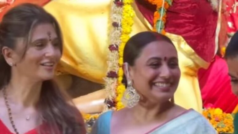 रानी मुखर्जी इन दिनों सोशल मीडिया पर छाई हुई हैं. दरअसल, वह हाल ही में एक्ट्रेस काजोल के साथ दुर्गा पंडाल में नजर आ रही हैं. जहां प्रियंका चोपड़ा से लेकर ट्विंकल खन्ना जैसे सितारे पहुंचते हुए नजर आ रहे हैं. लेकिन हाल ही में एक वीडियो सामने आया, जिसमें रानी मुखर्जी को संजय दत्त की एक्स वाइफ यानी रिया पिल्लई के साथ देखा गया, जिसका वीडियो सोशल मीडिया पर छाया हुआ है. वहीं वीडियो को फैंस का प्यार मिल रहा है. जबकि इंटरनेट यूजर्स रिया पिल्लई की खूबसूरती देख तारीफ करते दिख रहे हैं.