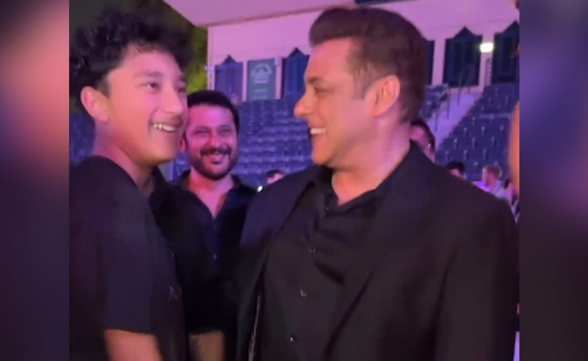 पैपराजी द्वारा शेयर किए गए वीडियो में सलमान खान ब्लैक सूट में हैंडसम लग रहे हैं. जबकि शाहरान को भी ब्लैक टीशर्ट और पैंट में देखा जा सकता है. क्लिप में दोनों एक-दूसरे से मिलते हुए एक दूसरे को गले लगाते हुए नजर आ रहे हैं. वहीं शाहरान की हाइट सलमान खान के बराबर हो गई है. ये देखकर फैंस भी बेहद खूश नजर आ रहे हैं.
