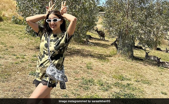 सारा अली खान ने अपने ऑफिशियल इंस्टाग्राम अकाउंट पर सिडनी और मेलबर्न ट्रिप के दौरान की कई तस्वीरें शेयर कीं. पहली तस्वीर में सारा बेहद क्यूट पोज देती दिख रही हैं. सारा के पीछे कुछ हिरण नजर आ रहे हैं. वहीं दूसरी तस्वीर में सारा येलो कलर की स्विमसूट पहने सिर पर व्हाइट एंड ग्रीन कलर की कैप लगाए नजर आ रही हैं. आंखों पर काला चश्मा लगाए, मेसी बालों में सारा समंदर किनारे पोज दे रही हैं. वहीं एक तस्वीर में सारा पिंक कलर की सलवार सूट में बेहद खूबसूरत दिख रही हैं. तस्वीरों को कैप्शन देते हुए सारा ने लिखा है, ‘सिडनी में सारा...और मेलबर्न में एक मिनट'.