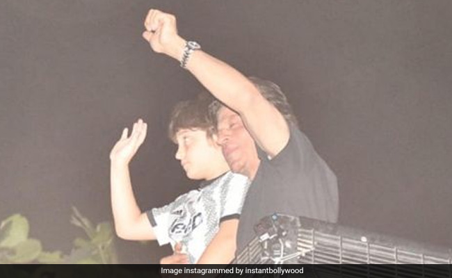 इस दौरान अपने पापा के साथ नन्हे अबराम भी दिखाई दिए. शाहरुख फैन्स को किस देते और हाथ जोड़कर उनका शुक्रिया करते नजर आए. शाहरुख खान का लुक भी देखने लायक था. वे डार्क ब्लू रंग की टीशर्ट के साथ सेम कलर की जींस में काफी हैंडसम दिख रहे थे. वहीं अबराम भी सफेद रंग की टीशर्ट में बहुत क्यूट लग रहे थे.