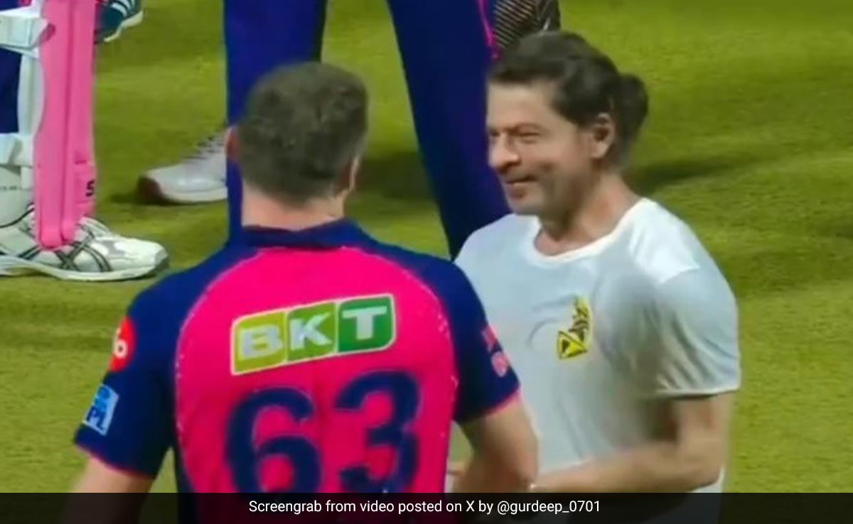 इस मैच में शाहरुख खान की टीम केकेआर ने 6 विकेट खो कर 223 रनों का बड़ा स्कोर खड़ा किया. इसके बावजूद केकेआर (कोलकाता नाइट राइडर्स) को आरआर (राजस्थान रॉयल्स) से हार का ही सामना करना पड़ा. आरआर की तरफ जोस बटलर ने विनिंग शॉट मारा और अपनी टीम को जीत दिलवाई. जी तोड़ कोशिश के बावजूद मिली इस हार से केकेआर के खिलाड़ी बुरी तरह हताश थी. ऐसे खिलाड़ियों के बीच खुद शाहरुख खान पहुंचे और अपनी टीम के खिलाड़ियों को गले लगाया. इसके बाद वो आरआर टीम के प्लेयर्स के पास भी पहुंचे. मैदान में ही बैठे जोस बटलर से भी वो गले मिले.