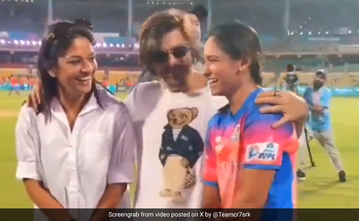 खेल के मैदान से एक और वीडियो सामने आया है, जिसमें शाहरुख खान मुंबई इंडियंस की कैप्टन हरमनप्रीत कौर को दुलारते हुए दिख रहे हैं. वीडियो में देखा जा सकता है कि शाहरुख पहले हरमनप्रीत से हाथ मिलाते हैं और उसके बाद उन्हें गले से लगा लेते हैं, इतना ही नहीं शाहरुख हरमनप्रीत के सिर पर भी हाथ फेरते हैं. इस प्यारे वीडियो को भी लोग खूब पसंद कर रहे हैं. इस दौरान शाहरुख को उनका सिग्नेचर पोज भी देते हुए देखा जा सकता है. फिलहाल लोगों को WPL में शाहरुख की धमाकेदार परफॉर्मेंस का बेसब्री से इंतजार है.