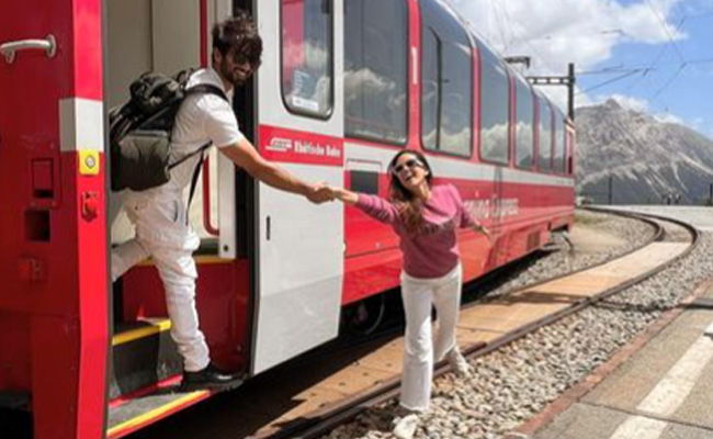 मीरा राजपूत इन दिनों स्विट्जरलैंड में अपने पति शाहिद कपूर के साथ वेकेशन एंजॉय कर रही हैं. उन्होंने थ्रोबैक तस्वीर साझा की हैं. उन्होंने एक ट्रेन की फोटो भी शेयर की है, जो शाहरुख खान और काजोल के दिलवाले दुल्हनिया ले जाएंगे का सीन याद दिला रहा है. उन्होंने अपनी एक फोटो में शेयर की है, जो ट्रेन की है. तस्वीर में शाहिद कपूर ने कैमरे के लिए पोज़ है. वह ह्वाइट टीशर्ट पैंट और शू पहने नजर आ रहे हैं. उन्होंने मीरा का हाथ पकड़ रखा है और उनके चेहरे पर बड़ी सी स्माइल है. तस्वीर के बैकग्राउंड में स्विस आल्प्स की एक झलक भी दिख रही है. तस्वीर को शेयर करते हुए मीरा ने लिखा, "एक्टिंग चिल//चीसी."