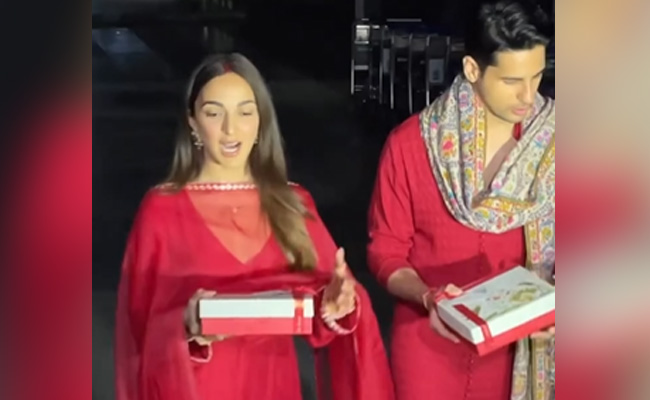 कियारा और सिद्धार्थ शादी के बाद वापस लौट आए हैं. शादी के बाद कपल सबसे पहले दिल्ली गया है, जिसकी कुछ तस्वीरें सोशल मीडिया पर वायरल हुई थीं. वहीं अब सिद्धार्थ अपनी नई नवेली दुल्हन के साथ पैपराजी को मिठाई बांटते हुए नजर आए. इस दौरान कपल की तस्वीरें भी कैमरे में कैद हुईं. सिद्धार्थ और कियारा का एक वीडियो सोशल मीडिया पर तेजी से वायरल हो रहा है, जिसमें वे पैप को मिठाई बांटते हुए दिखाई दे रहे हैं.