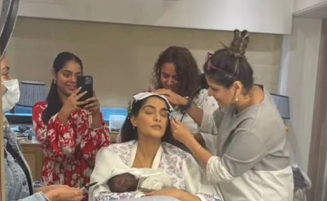 सोनम कपूर (Sonam Kapoor) हाल ही में मां बनी हैं और जल्द ही उन्होंने मल्टीटास्किंग स्किल सिख लिया. एक्ट्रेस मुंबई में अपने आवास पर हाल ही में अपनी मां सुनीता कपूर द्वारा आयोजित करवा चौथ उत्सव का हिस्सा थीं. उन्होंने एक वीडियो शेयर की है, जिसमें वह गुलाबी और हरे रंग के रेशमी लहंगे में तैयार हो रही हैं. सोनम कपूर करवा चौथ के लिए तैयार होने के दौरान अपने बेटे वायु ब्रेस्ट फिड भी कराती नजर आ रही हैं. उनकी टीम उनका मेकअप करती दिख रही है, जबकि वह बेबी वायु को ब्रेस्ट फिड करा रही हैं.