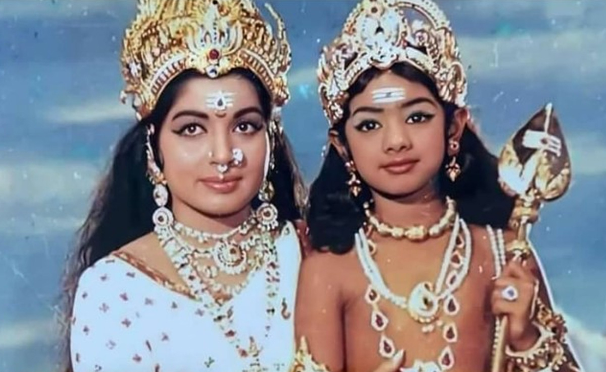 इस पुरानी तस्वीर को जरा गौर से देखें तस्वीर में तमिलनाडु की पूर्व मुख्यमंत्री और एक्ट्रेस जयललिता देवी के किरदार में नजर आ रही हैं और उनकी गोद में एक बच्ची बैठी हुई है. हमने आपको कुछ हिंट भी दीं कि ये कौन हो सकती है तो क्या आप पहचान पाए ? चलिए आपको बता देते हैं कि ये हम सबकी फेवरेट एक्ट्रेस रही चांदनी उर्फ श्रीदेवी हैं. यह तस्वीर जयललिता की फिल्म आथी पराशक्ति की है. इसमें जयललिता ने देवी शक्ति की भूमिका निभाई थी. उनके साथ जेमिनी गणेशन ने भगवान शिव की भूमिका निभाई थी और इस फिल्म में श्रीदेवी ने भगवान मुरुगन का रोल प्ले किया था.