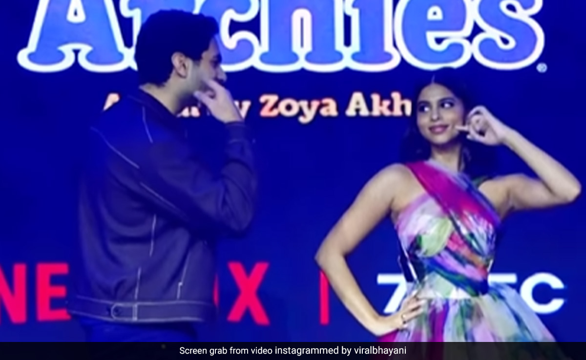अपनी आगामी फिल्म के एक गाने के लॉन्च के दौरान अगस्त्य नंदा और सुहाना खान ने अपनी फिल्म द आर्चीज के एक गाने पर एक साथ डांस किया. जहां सुहाना खान हॉल्टर-नेक मिडी ड्रेस पहने नजर आईं, वहीं अगस्त्य ऑल-ब्लैक आउटफिट पहने दिखे. डांस करते समय दोनों एक-दूसरे की आंखों में खोए हुए अपनी परफॉर्मेंस को एन्जॉय करते हुए बहुत क्यूट लग रहे थे. हालांकि नेटिजन्स को दोनों की ये डांस परफॉरमेंस पसंद नहीं आई और उन्होंने सुहाना और अगस्त्य को ट्रोल करना शुरू कर दिया.
