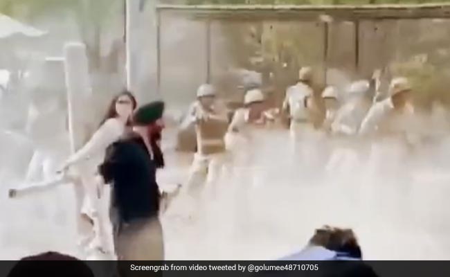 गदर 2 के सेट से वायरल हुई वीडियो में पगड़ी पहने सनी देओल पठानी सूट में नजर आ रहे हैं. जबकि एक्ट्रेस सिमरत कौर एक्टर के साइ़ड में एक खंभे से बंधे हुए दिख रही हैं. जबकि दोनों को खाकी वर्दी में बंदूकों के साथ सैनिकों के एक बड़े समूह ने घेरते हुए दिख रहे हैं. इतना ही नहीं गुस्से में सन्नी देओल खुद को छुड़ाने के दौरान पोल को जमीन से उखाड़ते हुए नजर आ रहे हैं.