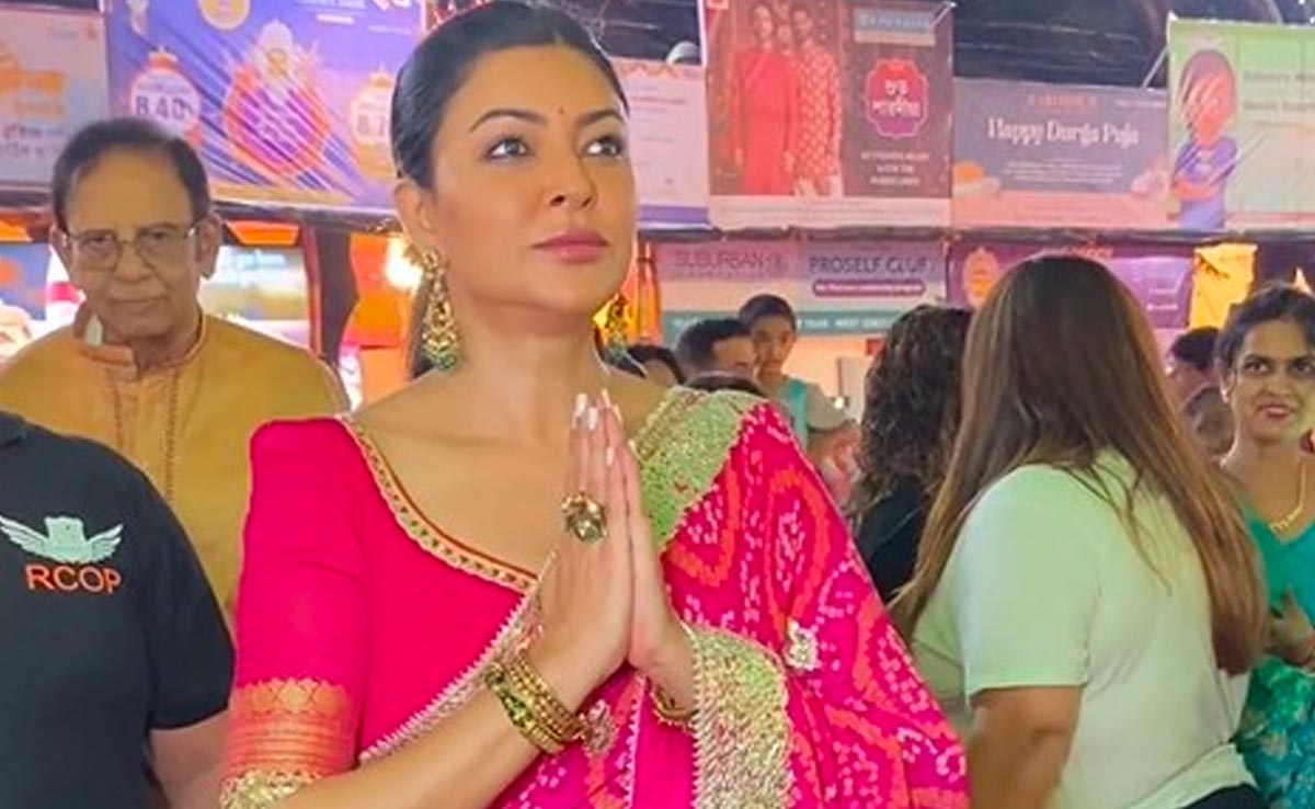 परिवार के साथ मां के दर्शन को पहुंचीं सुष्मिता