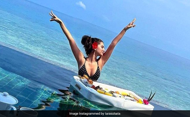 तारा सुतारिया इन दिनों मालदीव में छुट्टियां बिता रही हैं. वहां से वह फोटो शेयर कर रही हैं. उन्होंने एक फोटो शेयर की है, जिसमें वह तैरते हुए ब्रेकफास्ट का आनंद लेती दिख रही हैं. उन्होंने ब्लैक स्विमवियर में फोटो शेयर की है, उनका यह लुक फैंस को काफी पसंद आ रहा है. फोटो के साथ कैप्शन में उन्होंने कुछ इमोजी शेयर किए हैं. तारा के बॉयफ्रेंड आदर जैन ने भी मालदीव से एक तस्वीर शेयर की और लिखा, "मूड." तारा और आदर अपने अपने इंस्टा प्रोफाइल से मालदीव की अलग अलग फोटो शेयर कर रहे हैं.