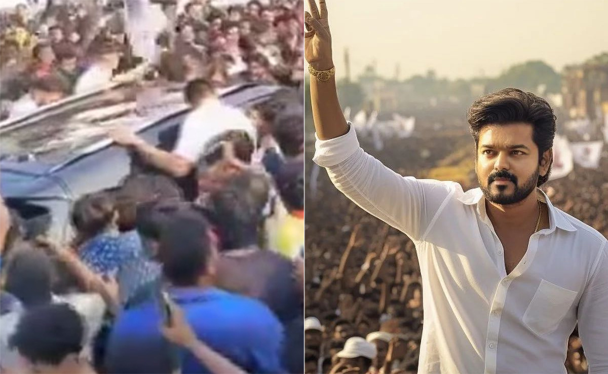 एयरपोर्ट पर तलपति विजय का स्वागत हीरो की तरह किया गया. सोशल मीडिया पर कई वीडियो में उनके आने पर भारी धूमधाम देखी गई. एक्टर की एक झलक पाने के लिए हजारों लोग एयरपोर्ट पर इकट्ठा हुए. किसी स्टार के लिए फैन्स का ऐसा क्रेजी प्यार आजकल कम ही देखने को मिलता है. विजय के इस वेलकम की तस्वीरें और वीडियो सोशल मीडिया पर वायरल हो रही हैं. एक वायरल क्लिप में दिखाया गया है कि फैन्स की भारी भीड़ के चलते उनकी गाड़ी को भी नुकसान हो गया. वीडियो में साफ दिख रहा है कि टोयोटा हाइब्रिड कार को नुकसान पहुंचा है. टूटे हुए कांच के टुकड़े बिखरे हुए थे. गाड़ी की बॉडी पर खरोंचें थीं और हर जगह डेंट थे.