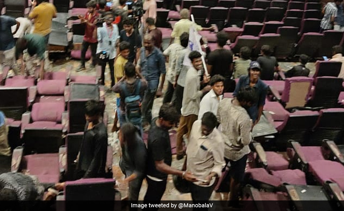 इस सिनेमा हॉल का नाम रोशनी सिल्वर स्क्रीन है. ट्रेड एनालिस्ट मनोबाला विजयबालन ने अपने एक्स अकाउंट पर सिनेमा हॉल की तस्वीरें और वीडियो को शेयर किया है. जिसमे सिनेमाघर की सीटें टूटी हुई नजर आ रही हैं. साथ ही लोगों की भीड़ भी दिखाई दे रही हैं. बताया जा रहा है कि दर्शकों ने लियो का ट्रेलर देखने के बाद अपना उत्साह दिखाने के चक्कर में सिनेमा हॉल की संपत्ति को नुकसान पहुंचाया है. आपको बता दें कि लियो का निर्देशन लोकेश कनगराज ने किया है. फिल्म के ट्रेलर की बात करें तो एक बार फिर साउथ का जलवा देखने को मिल रहा है. सीरियल किलर, गैंगस्टरों से भरे ट्रक और एक लकड़बग्घा से लड़ते सुपरस्टार विजय तलपति ने ट्रेलर को धमाकेदार बनाता है.
