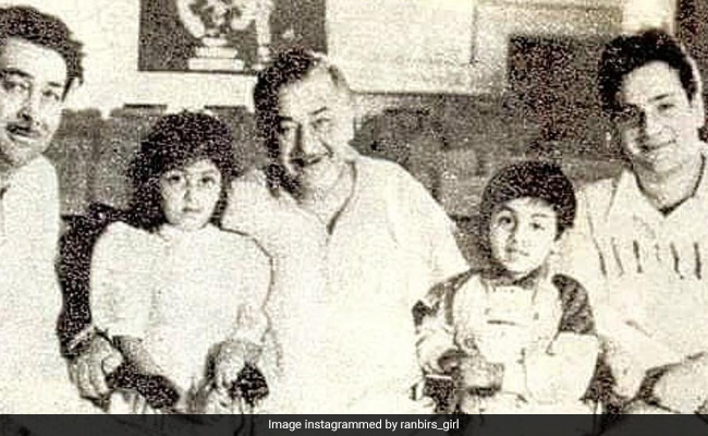 रणबीर कपूर, दिवंगत एक्टर ऋषि कपूर और एक्ट्रेस नीतू कपूर के बेटे और राज कपूर के पोते हैं. रणबीर आज बॉलीवुड में एक बड़ा नाम बन चुके हैं, हाल ही में उनकी फिल्म बह्रास्त्र रिलीज हुई थी, जो खूब पसंद की गई. इस तस्वीर में रणबीर और उनकी बहन रिद्धिमा अपने दादा राज कपूर, चाचा रणधीर कपूर और राजीव कपूर के साथ बैठे नजर आ रहे हैं.