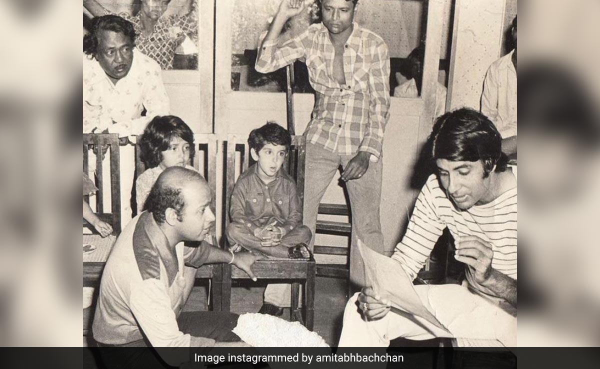 ब्लैक एंड व्हाइट इस तस्वीर को जरा गौर से देखिए, इस फोटो में बॉलीवुड के महानायक यानी कि अमिताभ बच्चन अपने पहले गाने की प्रैक्टिस करते हुए नजर आ रहे हैं. दरअसल, मिस्टर नटवरलाल फिल्म में अमिताभ बच्चन ने पहली बार मेरे पास आओ मेरे दोस्तों गाना गया था. इस गाने का म्यूजिक राजेश रोशन ने दिया था. इस तस्वीर में राजेश रोशन और अमिताभ बच्चन के अलावा कुर्सी पर पालथी मारकर एक बच्चा बैठा हुआ आपको नजर आ रहा होगा, क्या आप गेस कर पा रहे हैं कि यह बच्चा कौन है? अगर नहीं, तो हम आपको बता दें कि कोई और नहीं बल्कि बॉलीवुड के सुपर हीरो ऋतिक रोशन ही है, जो इस तस्वीर में बेहद प्यारे लग रहे हैं और अमिताभ बच्चन को ऐसे देख रहे हैं जैसे कोई अजूबा उन्होंने देख लिया हो.
