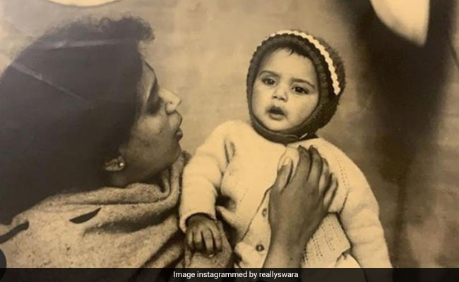 अब शायद आप पहचान गए होंगे और नहीं पहचान पाए तो हम आपको बता देते हैं. यह रांझना फेम स्वरा भास्कर की बचपन की फोटो है. हाल ही स्वरा ने यह फोटो अपने इंस्टा अकाउंट से शेयर किया है. फोटो में उनकी मां ने उन्हें गोद में लिया हुआ है.