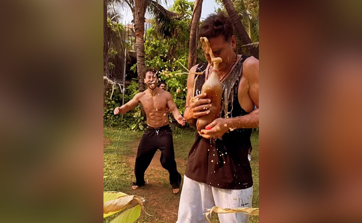 'बड़े मियां छोटे मियां' इस साल ईद के मौके पर रिलीज हो रही ये फिल्म रिलीज के बाद चाहे कैसी भी निकले लेकिन रिलीज से पहले अपने वायरल वीडियोज और स्टार कास्ट के प्रैंक्स के चलते खूब सुर्खियां बटोरी हैं. फिलहाल अप्रैल फूल्स डे का एक वीडियो सोशल मीडिया पर खूब देखा जा रहा है. इस वीडियो में आप देखेंगे कि टाइगर श्रॉफ एक पेप्सी की बॉटल को बुरी तरह से शेक करके नीचे रख देते. इतने में अक्षय कुमार रनिंग करते हुए आते हैं. अक्षय को आता देख टाइगर उन्हें बॉटल खोल कर पास करने को कहते हैं. अक्षय जैसे ही बॉटल खोलते हैं पेप्सी बड़े ही प्रेशर से बाहर निकलती है. अक्षय अपने कोस्टार टाइगर की शैतानी समझ जाते हैं और फिर उसी बॉटल में भरी पेप्सी से सभी को नहला देती है.
