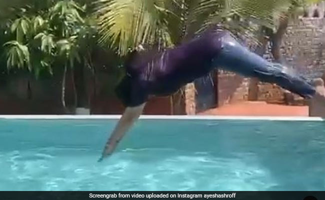 - आयशा श्रॉफ ने पूल में लगाई छलांक