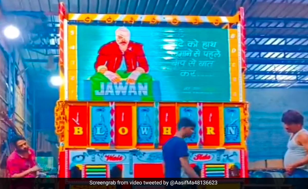 जवान ने इस साल बॉक्स ऑफिस कमाई के मामले में सारे रिकॉर्ड तोड़ दिए हैं. शाहरुख खान की इस फिल्म ने पठान को भी पीछे छोड़ दिया है. जवान को सिनेमाघरों में रिलीज हुए 20 दिन हो चुके हैं. यह फिल्म हर दिन बॉक्स ऑफिस पर धमाकेदार कमाई कर रही है. जवान में न केवल शाहरुख खान का शानदार एक्शन है, बल्कि फिल्म के बेहतरीन डायलॉग भी है. उनमें से एक डायलॉग है, 'बेटे को हाथ लगाने से पहले बाप से बात कर.' यह डायलॉग अब एक ट्रक पर लिखा हुई नजर आ रहा है. जिसका वीडियो वायरल हो रहा है.